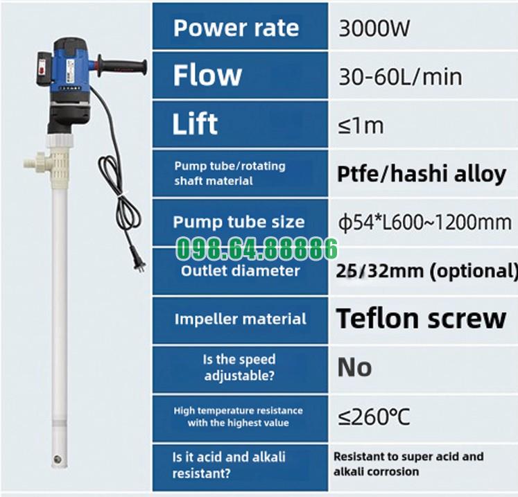 Trong môi trường công nghiệp, đặc biệt là khi làm việc với hóa chất hoặc chất lỏng có độ nhớt cao, yếu tố an toàn luôn được đặt lên hàng đầu. Sự an toàn tuyệt đối là ưu điểm của Bơm trục vít cầm tay hút thùng phuy JDT-3000W-PTFELG, giúp thiết bị vận hành ổn định và giảm thiểu rủi ro trong quá trình sang chiết chất lỏng.