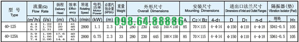 Bơm ISG40-125 đáp ứng lưu lượng khoảng 6–10 m³/h và cột áp lên tới 20–25 m tùy công suất động cơ, phù hợp cho các hệ thống tăng áp, cấp nước sinh hoạt và công nghiệp nhẹ.