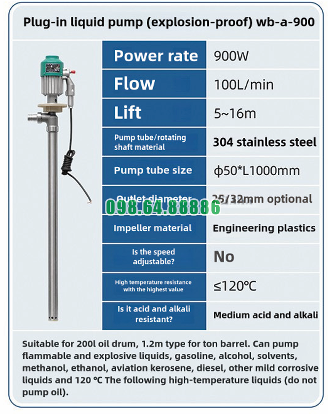 Đảm bảo chất lỏng nằm trong phạm vi cho phép của máy như xăng, cồn, dung môi, diesel hoặc hóa chất nhẹ, nhiệt độ dưới 120°C và không sử dụng cho dầu ăn.