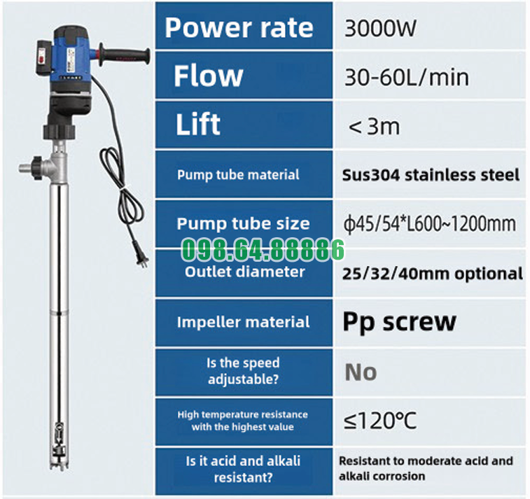 Thông số Máy bơm điện chất lỏng JDT-3000W-LGG120