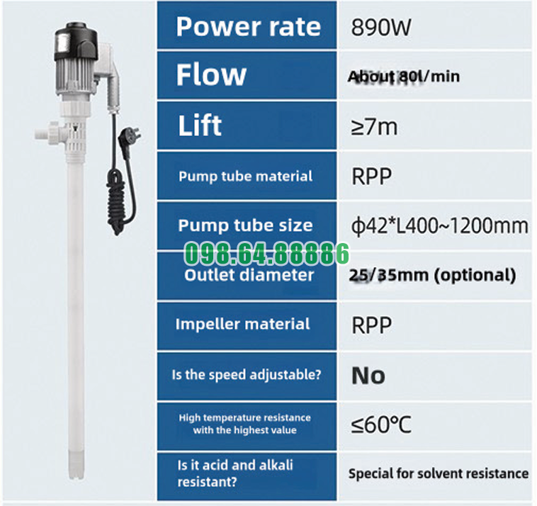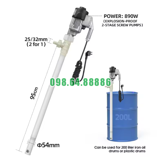 Máy bơm chất lỏng cắm trực tiếp chống cháy nổ JDT-EX890W-RPP được thiết kế để cắm trực tiếp vào thùng phuy chứa xăng dầu, giúp quá trình rút nhiên liệu diễn ra nhanh chóng mà không cần hệ thống phức tạp.