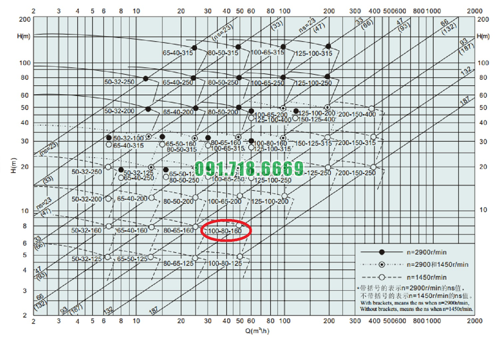 Đường cong hiệu suất của máy bơm nước cánh hở IHK100-80-160 vật liệu inox 304