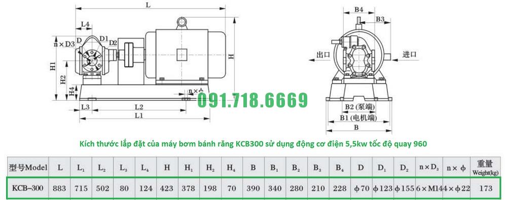 Bảng thông số kỹ thuật của bơm bánh răng KCB300 lưu lượng 18 m3/h