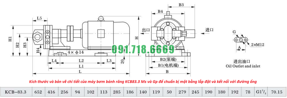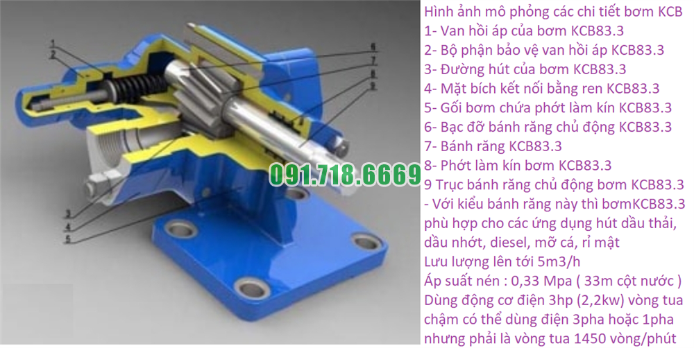 Ảnh đặc điểm chi tiết của bơm bánh răng KCB83.3 đường kính 42mm áp suất 3.3 kg/cm2