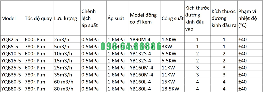 Bơm khí hóa lỏng loại YQB2-5 có thông số tối ưu ở: