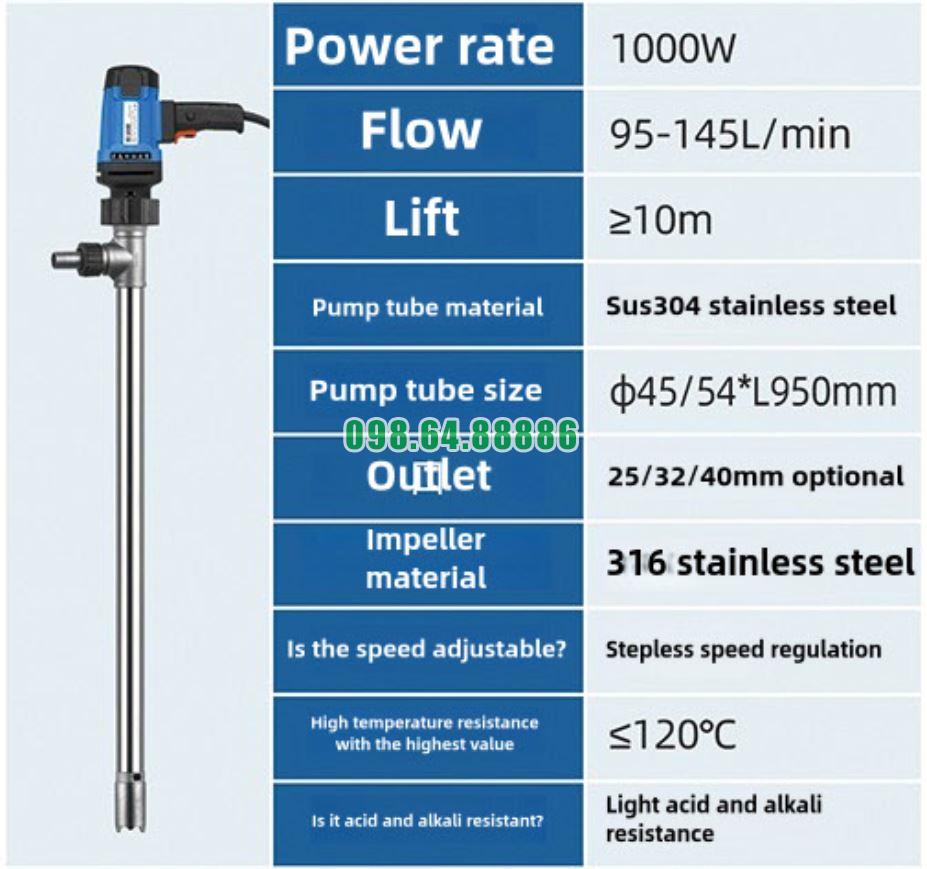 Bơm dầu phuy điện JDT-1000W-G120 được thiết kế để hoạt động trong giới hạn công suất và áp suất cho phép. Khi vận hành đúng chế độ, bơm duy trì trạng thái ổn định và an toàn.