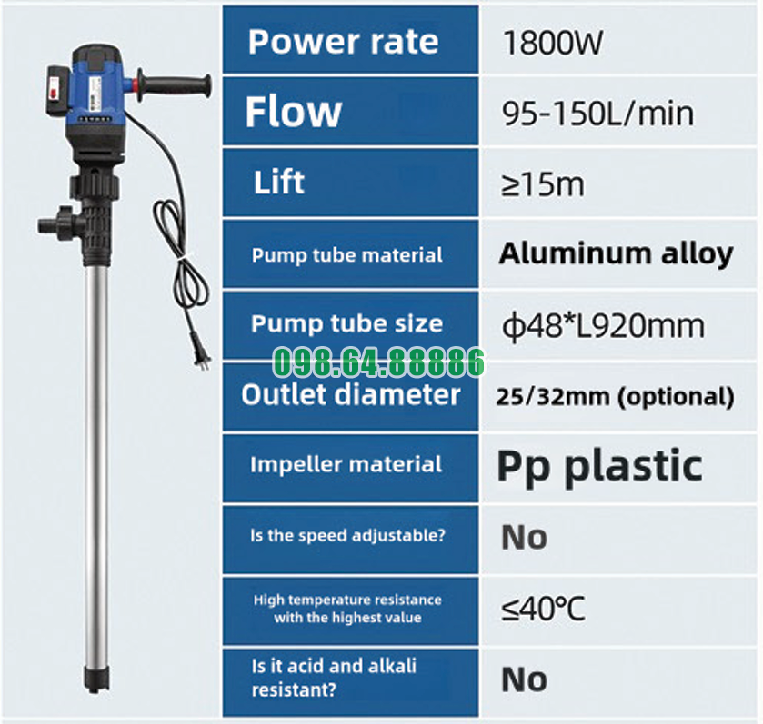 Với cấu tạo cánh quạt ly tâm được thiết kế tối ưu, bơm điện thùng phuy cao cấp JDT-1800W-L92 đạt tốc độ bơm nhanh, lưu lượng lớn và vận hành ổn định. Đây là yếu tố quan trọng giúp thiết bị nâng cao hiệu quả chiết rót, tiết kiệm thời gian và đáp ứng tốt yêu cầu của các ứng dụng công nghiệp hiện đại.