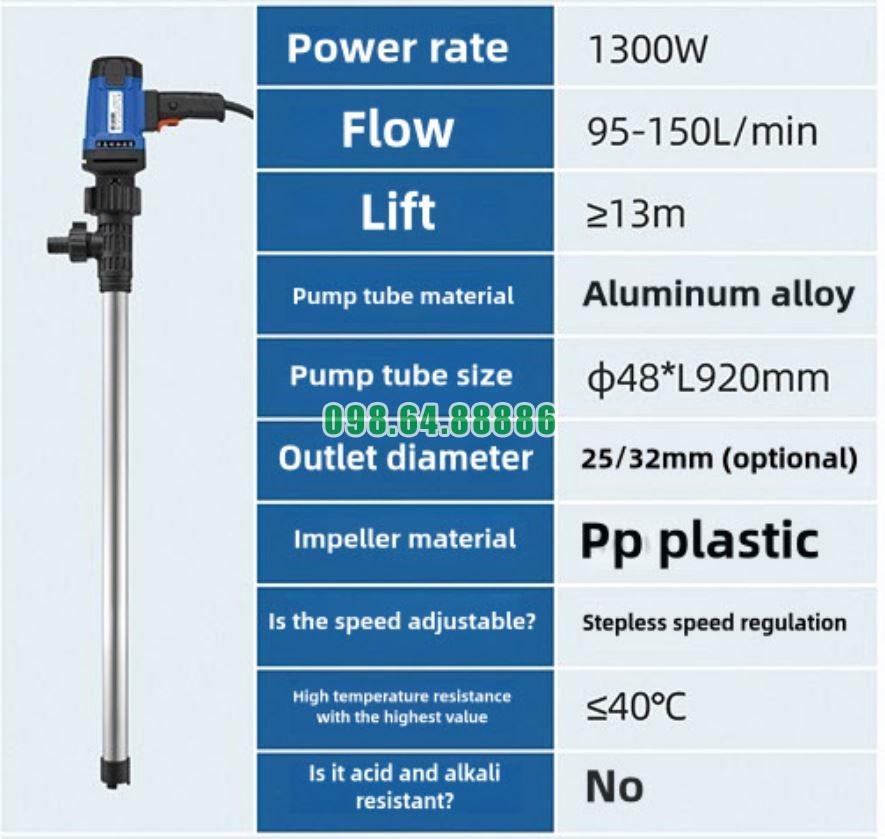 Cách dùng Máy bơm điện nhúng thùng phuy JDT-1300W-L92 chiết rót hóa chất an toàn