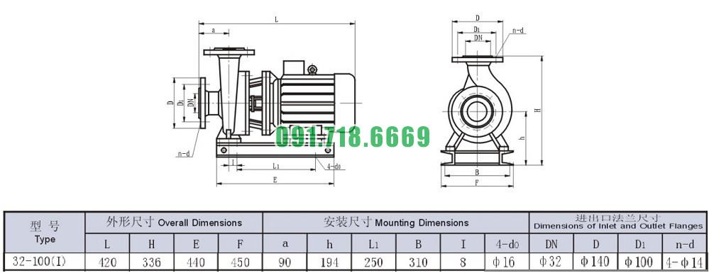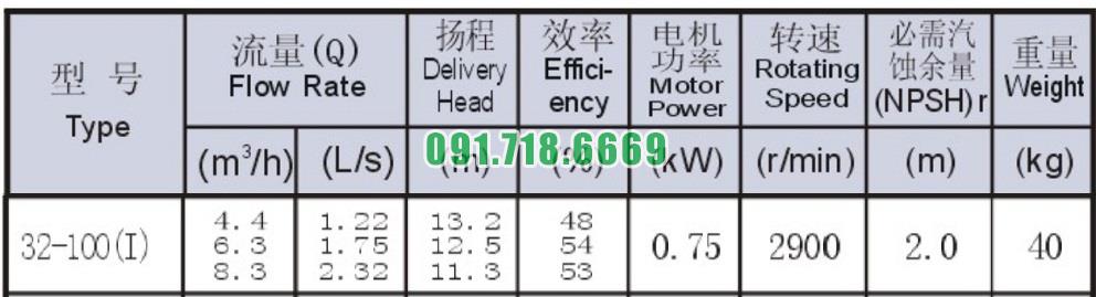 Bơm li tâm trục ngang ISW32-100-I có động cơ 0.75 kw đẩy cao 13.2m