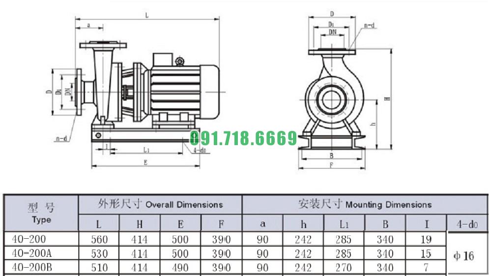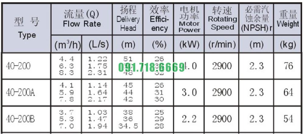 Bơm li tâm trục ngang mã SLW-ISW40-200 lưu lượng 8.3 m3/h