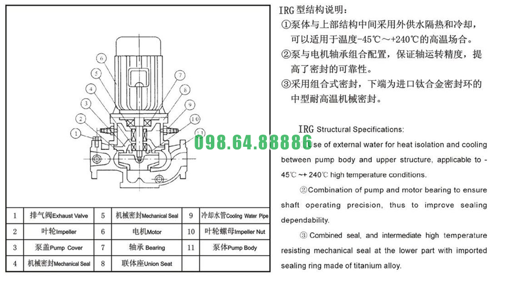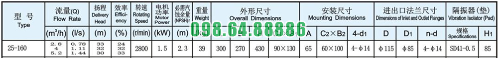 Bơm ly tâm trục đứng model ISG25-160, IRG25-160 đạt lưu lượng 1.11 L/s