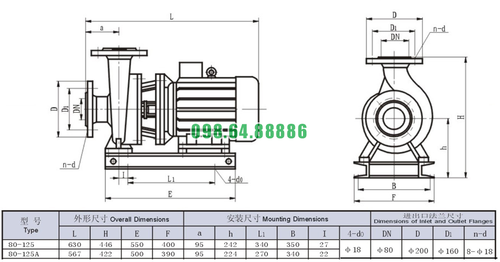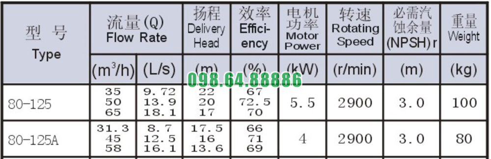 Bơm nước nằm ngang SLW80-ISW80-125 vòng quay 2900 r/min