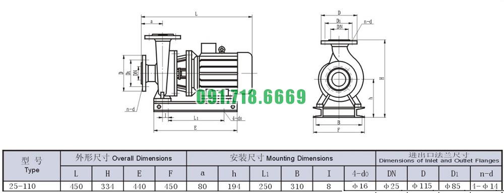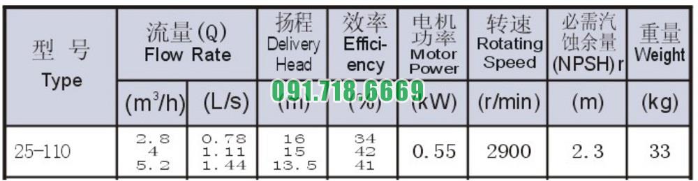 Bơm nước trục ngang ISW25-110 tốc độ quay 2900 r/min