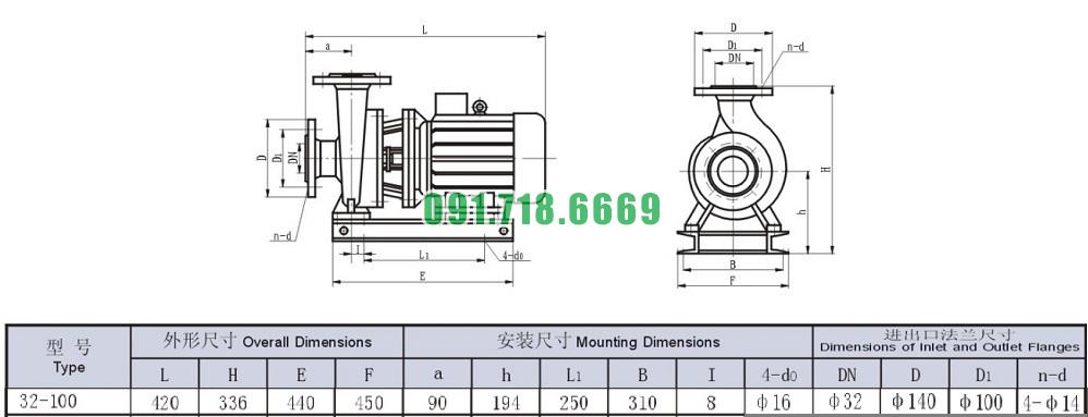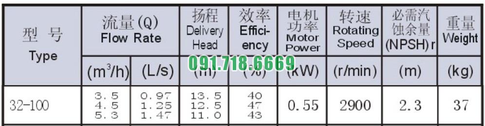 Bơm nước trục ngang ISW32-100 tốc độ quay 2900 r/min