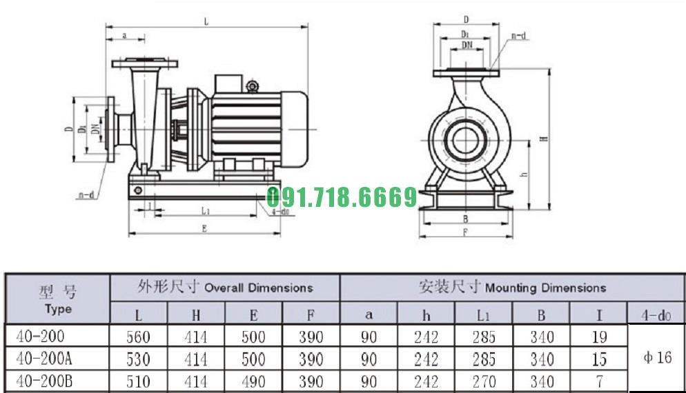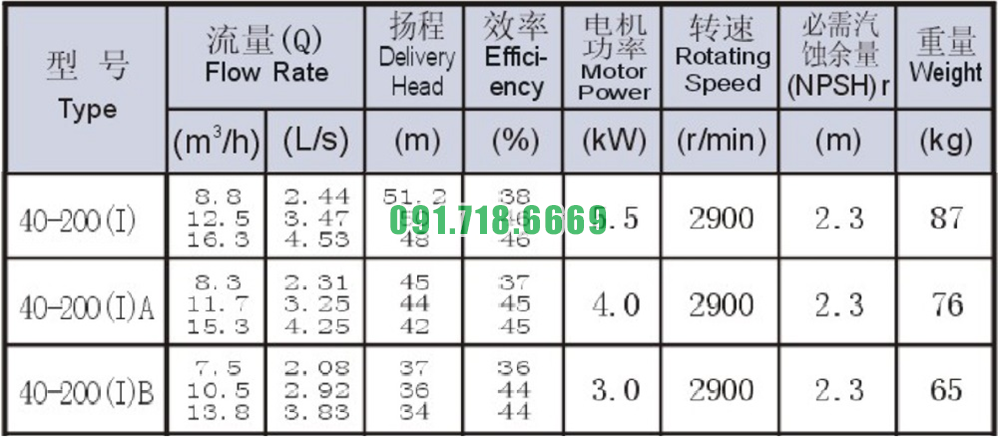 Bơm nước trục ngang SLW-ISW40-200-I đẩy cao max 51.2m
