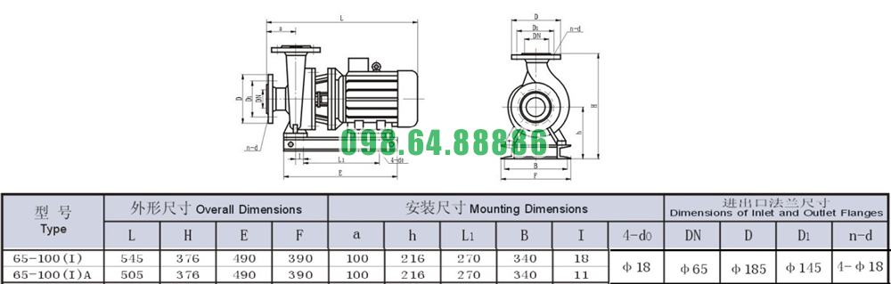 Bơm nước trục ngang SLW65-ISW65-125-I hút sâu 3m được tích hợp động cơ và máy bơm