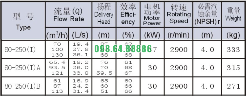 Đại lý bơm nước trục ngang model SLW80-ISW80-250-I công suất 37 kw đẩy cao 87m