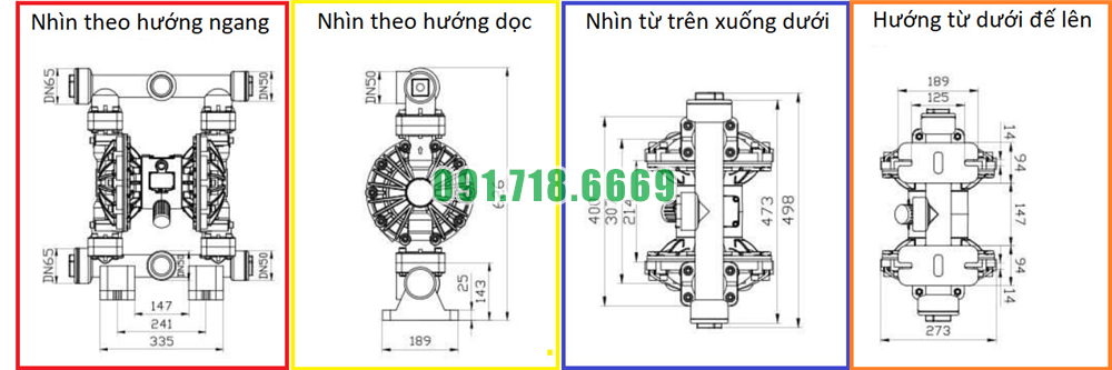 | QBY3-50STFF | 378 lit / phút | 8.4 kg / cm2 | Dn50 | 3 m | Nhựa PP