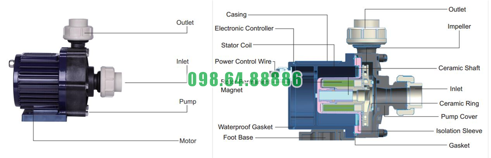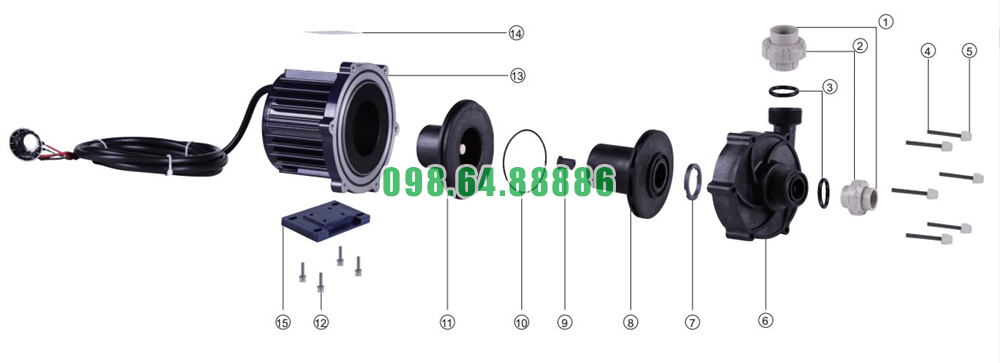 - Động cơ DC48V: Cung cấp lực quay, giúp bơm vận hành ổn định.