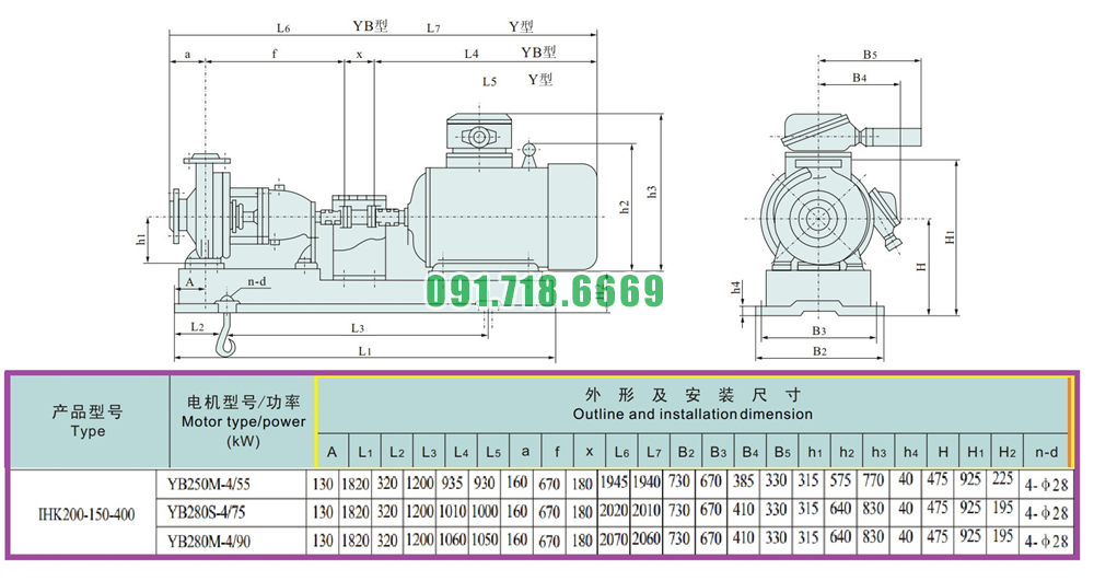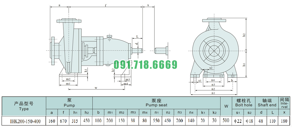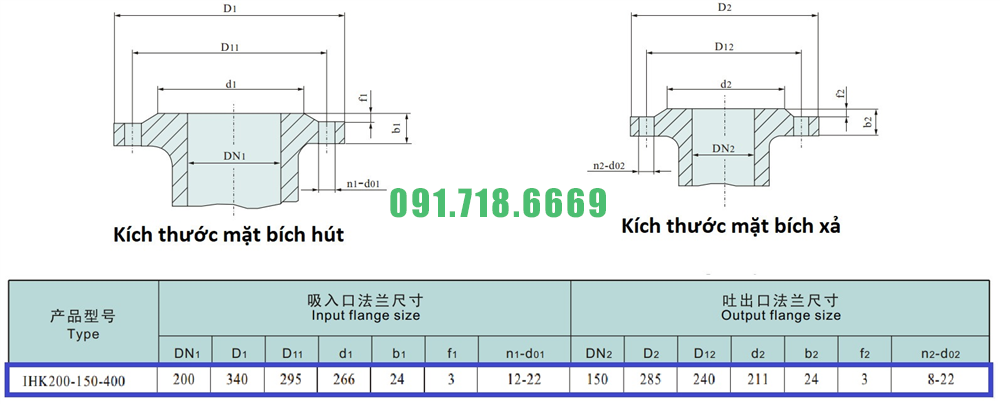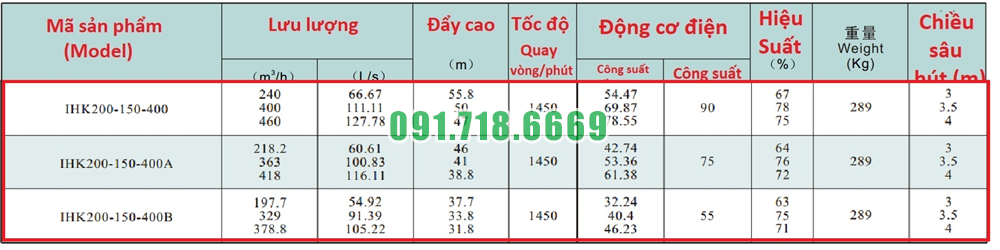 Giá máy bơm cánh hở li tâm trục ngang IHK200-150-400 kích thước 150mm