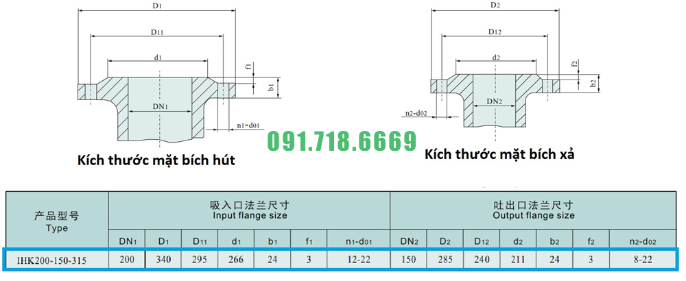 Giá máy bơm nước công nghiệp IHK200-150-315 vật liệu inox 316L