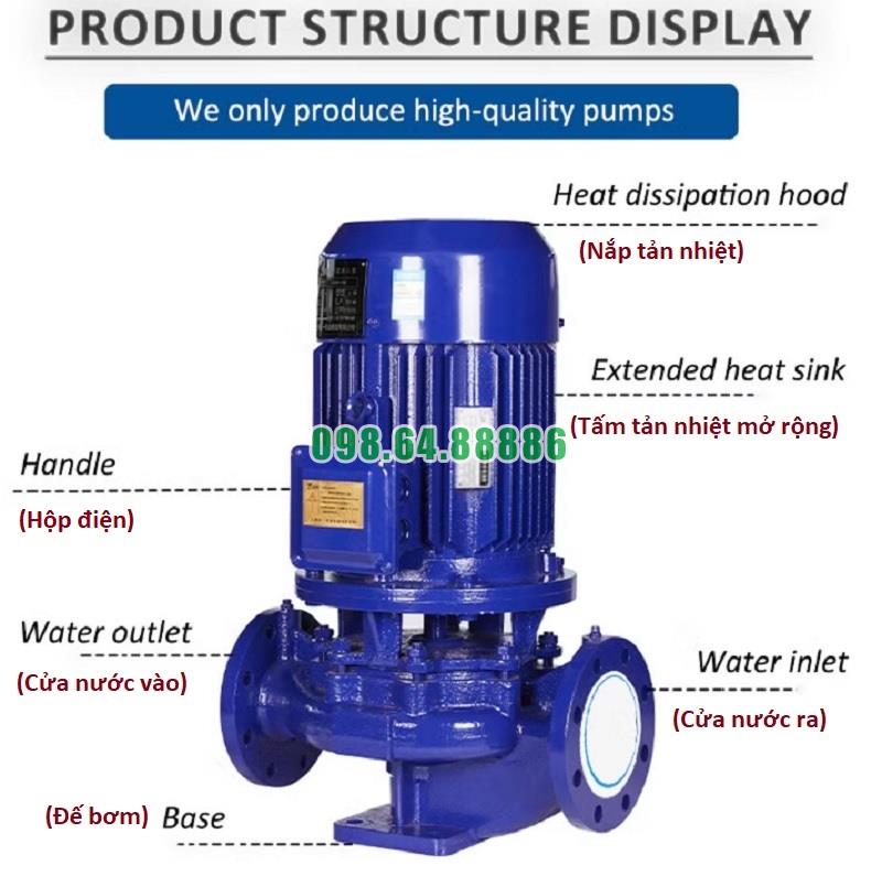 Máy bơm đồng trục thẳng đứng, bơm ly tâm trục đứng, inline ISG80-200B, IRG80-200B 15kw