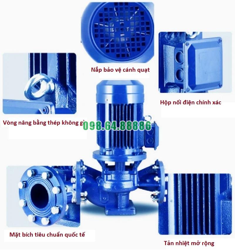 Máy bơm ly tâm trục đứng inline, bơm lùa, tăng áp ISG65-200A, IRG65-200A, 7.5kw, 6.5L/s