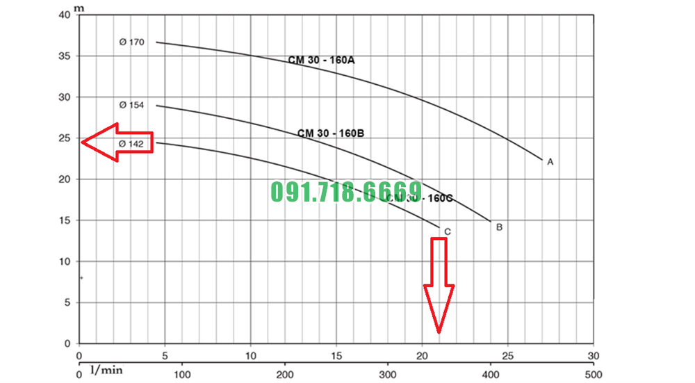 Hiệu suất máy bơm nước li tâm trục ngang CM32-160C kích thước DN50