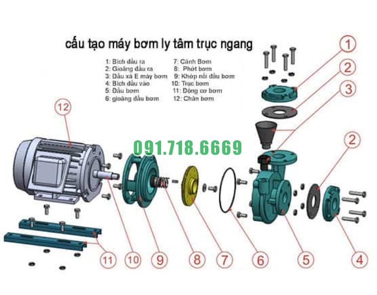 Trục bơm (Shaft): Là trục chuyển động được kết nối với động cơ và truyền động cho cánh bơm, giúp tạo ra dòng chảy nước li tâm trong thân bơm.