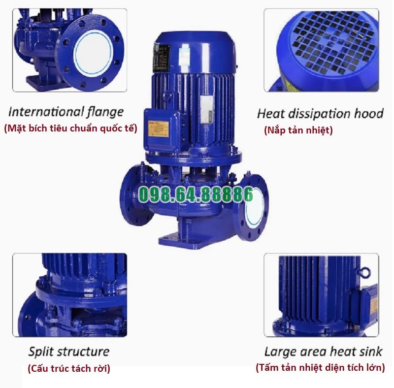 Máy bơm tăng áp, bơm lùa, bơm ly tâm trục đứng ISG65-250B, IRG65-250B 11kw